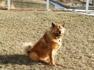 With her thick red coat, pricked ears and bushy tail, the name fits the dog well. Even her amber eyes look a bit foxy.