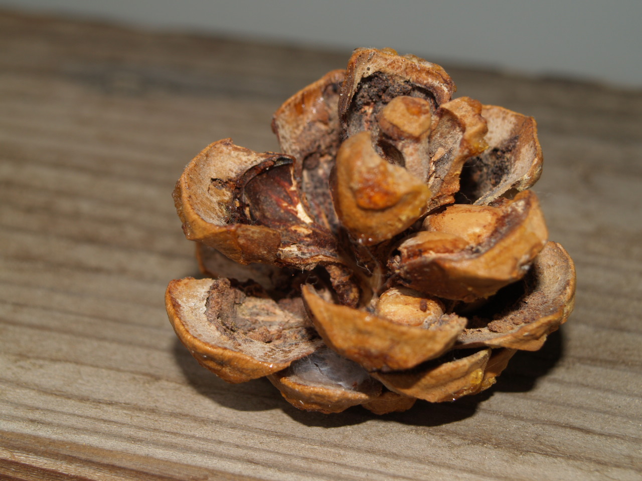 Other pines have a different strategy for producing their next generation. These trees scatter their seeds far from the parent. To do this, the trees enlist animals to spread and bury the pine seeds. First, the cone scales have no spines, which makes it easy for animals to get to the seeds. Second, pine seeds are very nutritious, high in amino acids and fats. This makes them very important food sources for turkeys; squirrels; bears; deer; pinyon, Stellars and scrub jays; and other wildlife. Third, in good years, there are lots of seeds.
