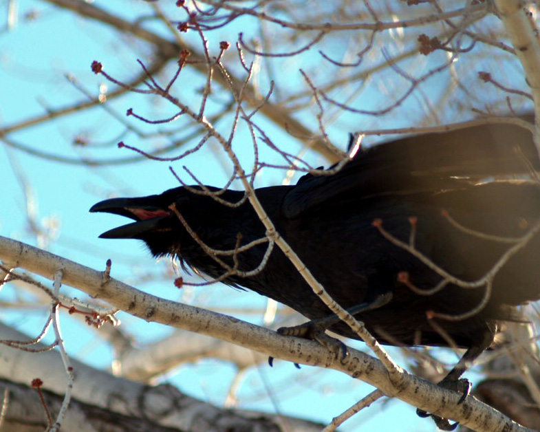We had an angry young raven visit the backyard earlier this week. I don’t know what had annoyed it so much, but it was not happy. Actually, I suspect that the bird had just been put in its place by another raven that was perched in another tree a few houses down from ours.