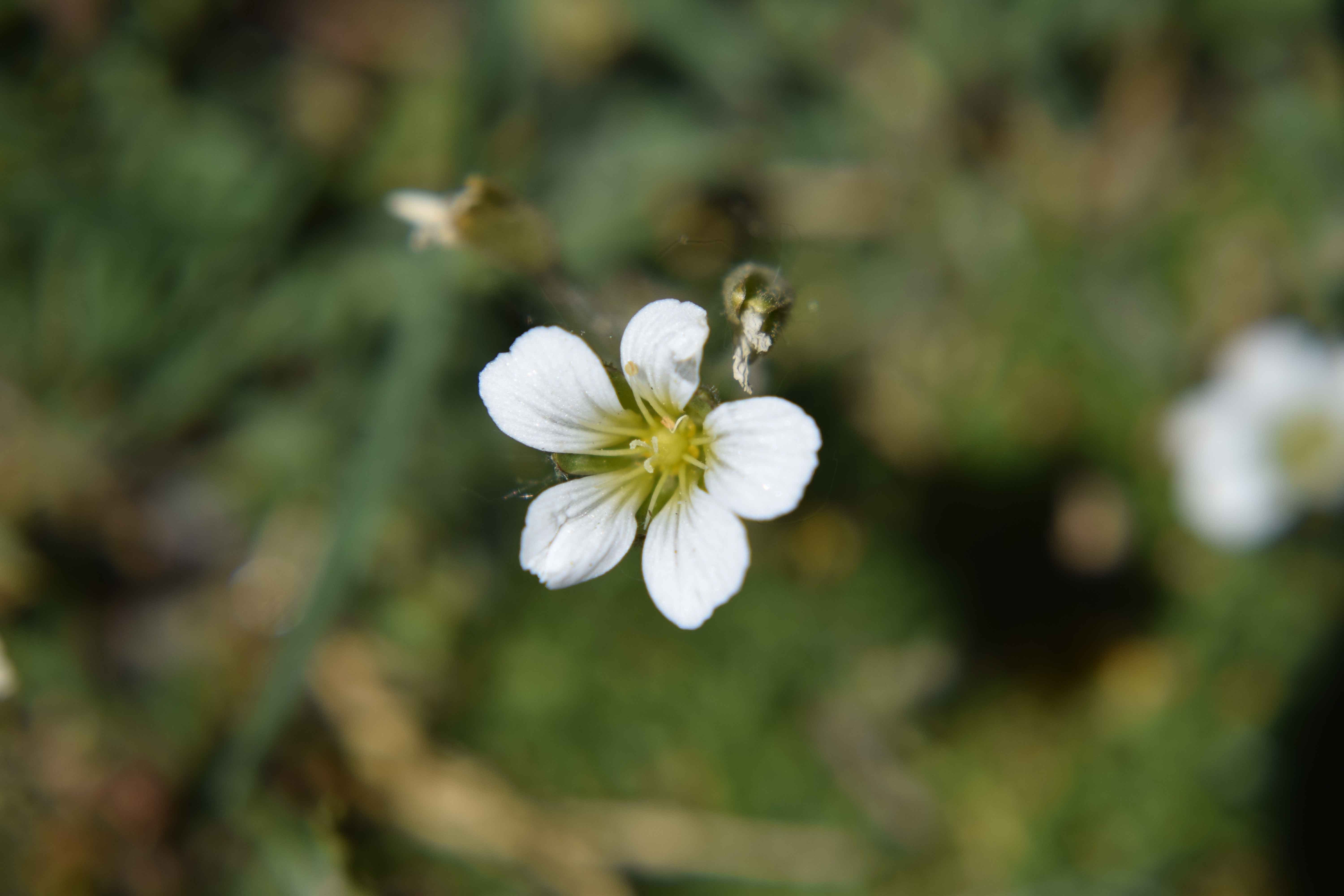 Alpine sandwort also grows low to the ground in a dense mat. This is another plant that thrives in areas where the wind blasts the snow away. It is in the carnation family!