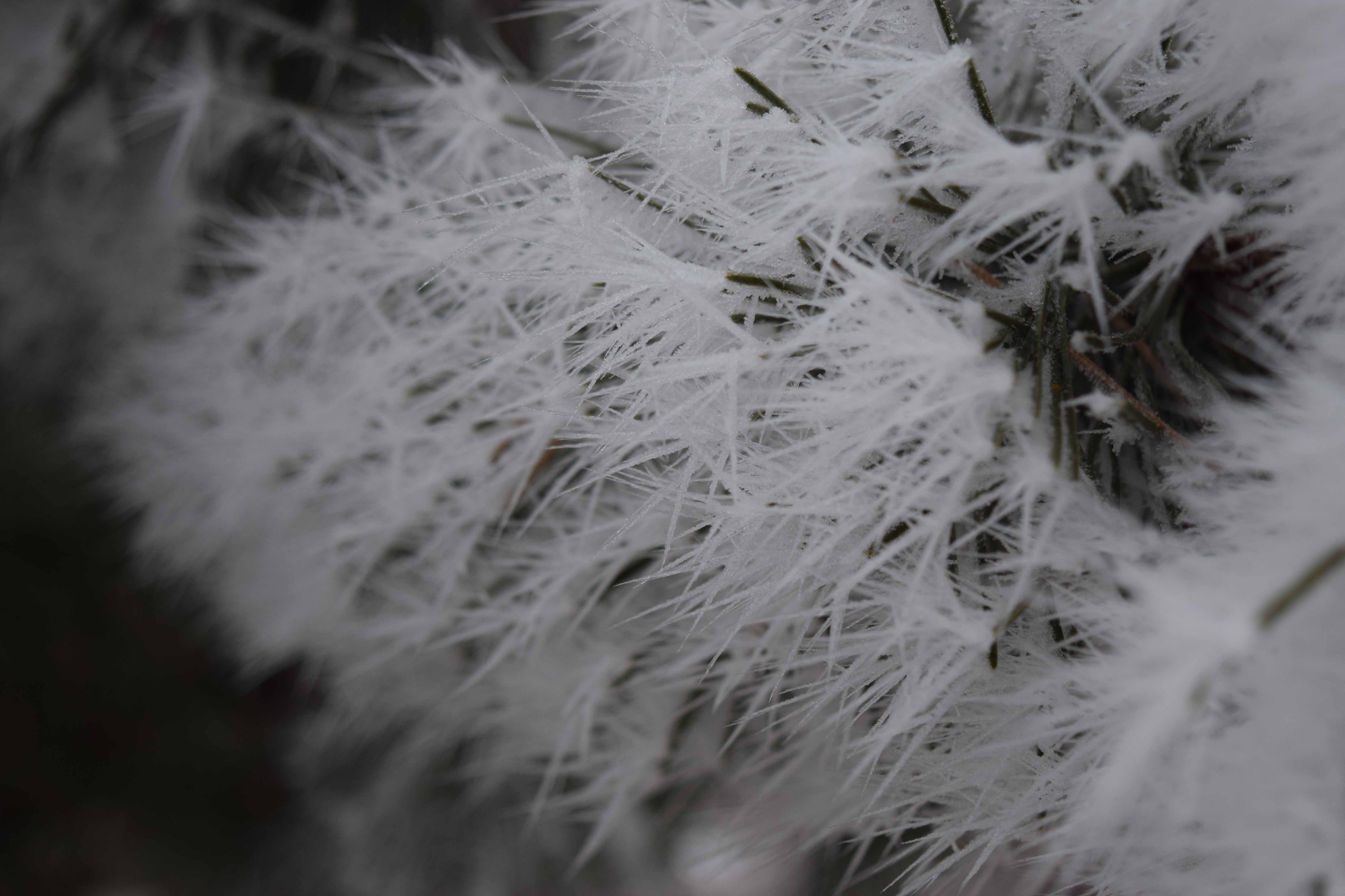 This morning, we woke up to a winter fantasy land, west of Denver, where I live. A perfect combination of 100% humidity, 32 degrees and a breath of wind let fog condense into rime ice over night. The ice spicules covered the trees in crystals an inch and a half long. http://blogs.discovermagazine.com/imageo/2015/01/13/frosty-day/#more-9671