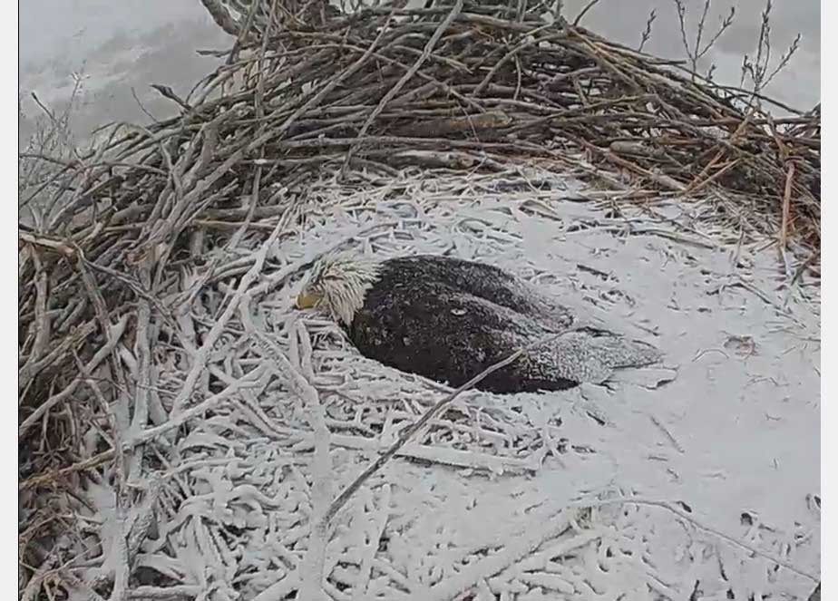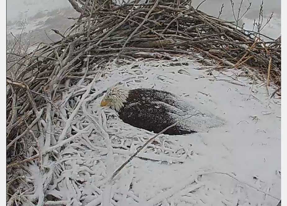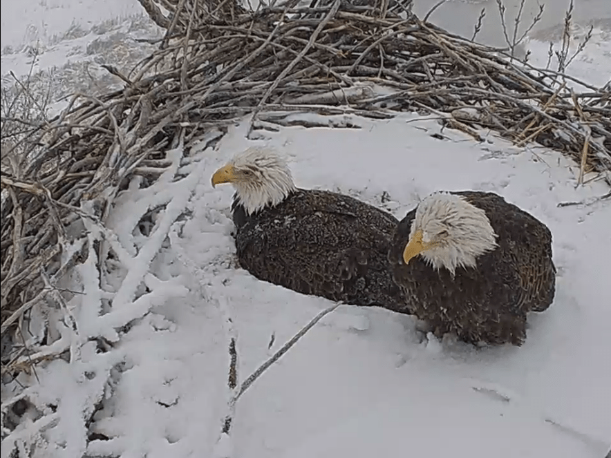 With Winter Storm Ulmer crashing in, the bald eagles at their Fort St. Vrain nest (https://amylaw.blog/2019/02/10/eagle-cam/)have had a hard day today.