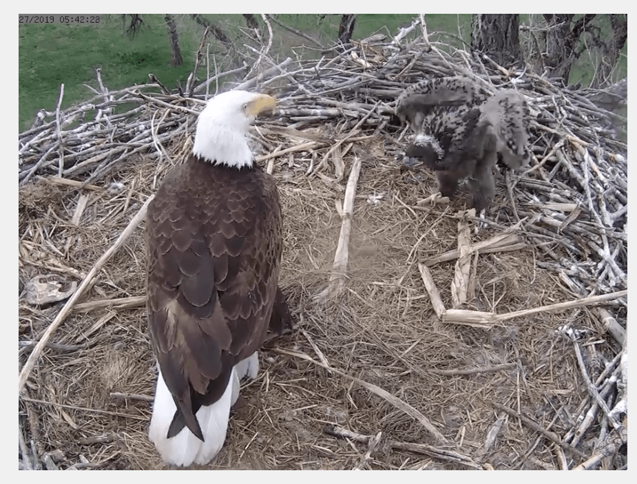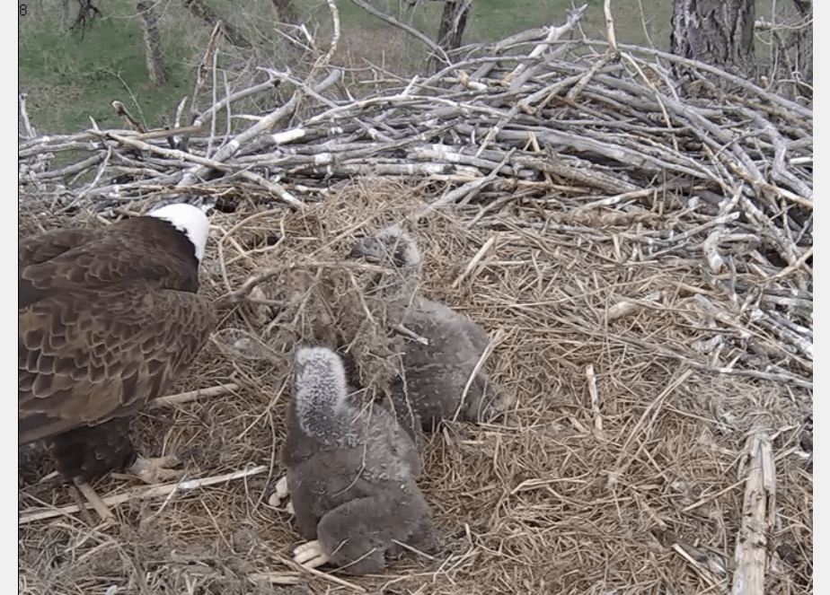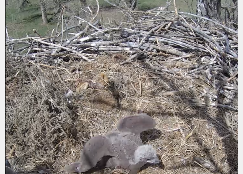 It was a windy day in Platteville — the nest was rocking back and forth a fair amount. This chick very deliberately stood up, spread it’s feet, and started stretching it’s wings, evidently enjoying the feel of the wind going over them.