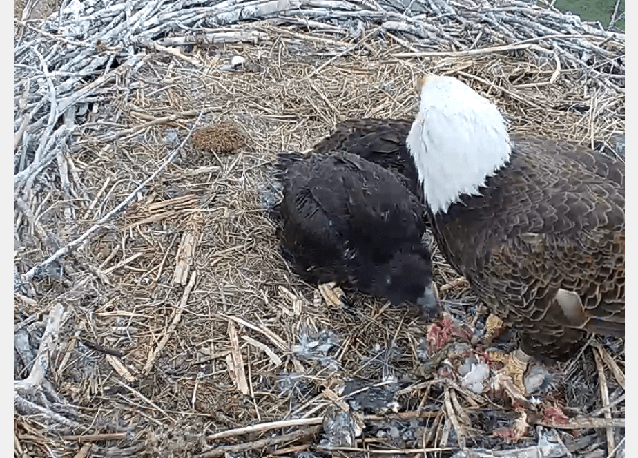 One of the Eagle chicks spent a fair amount of time staring into the camera this day. I suspect that the lens caught the light and that caught the attention of the chick.