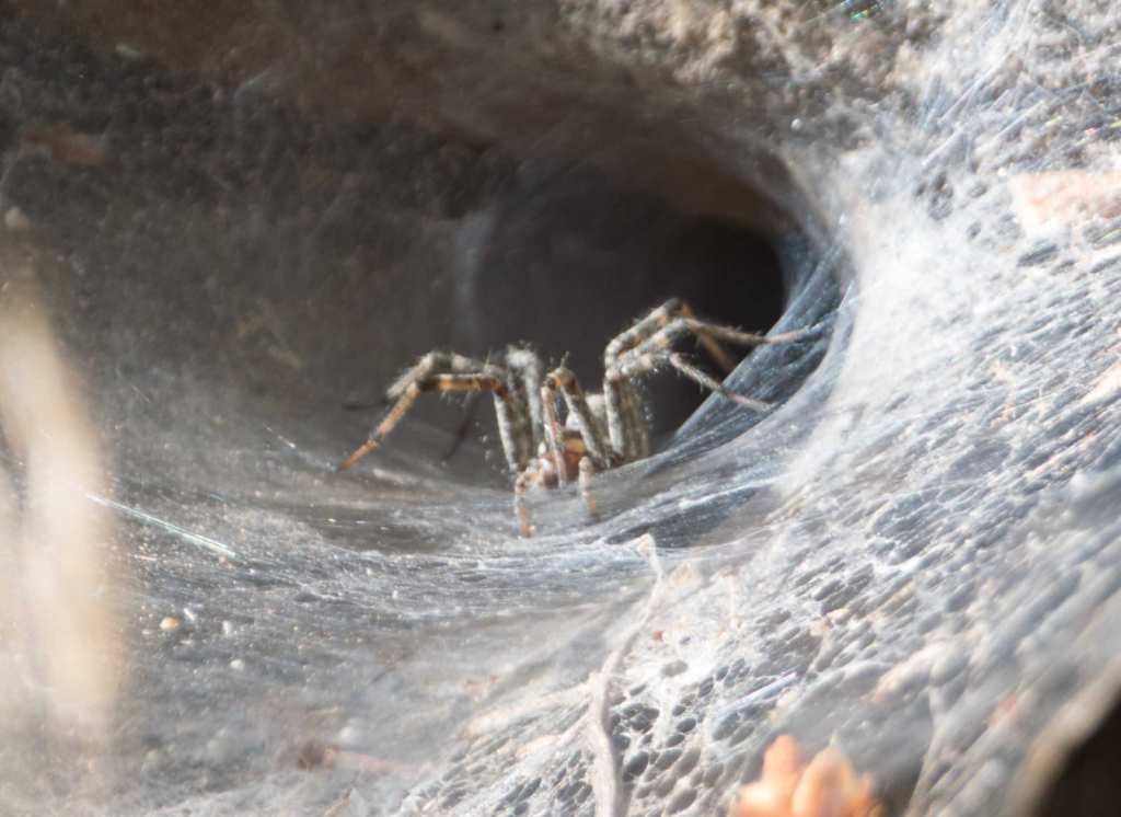 While I was getting my camera out, I realized that the spider was right in the entrance to it’s lair.