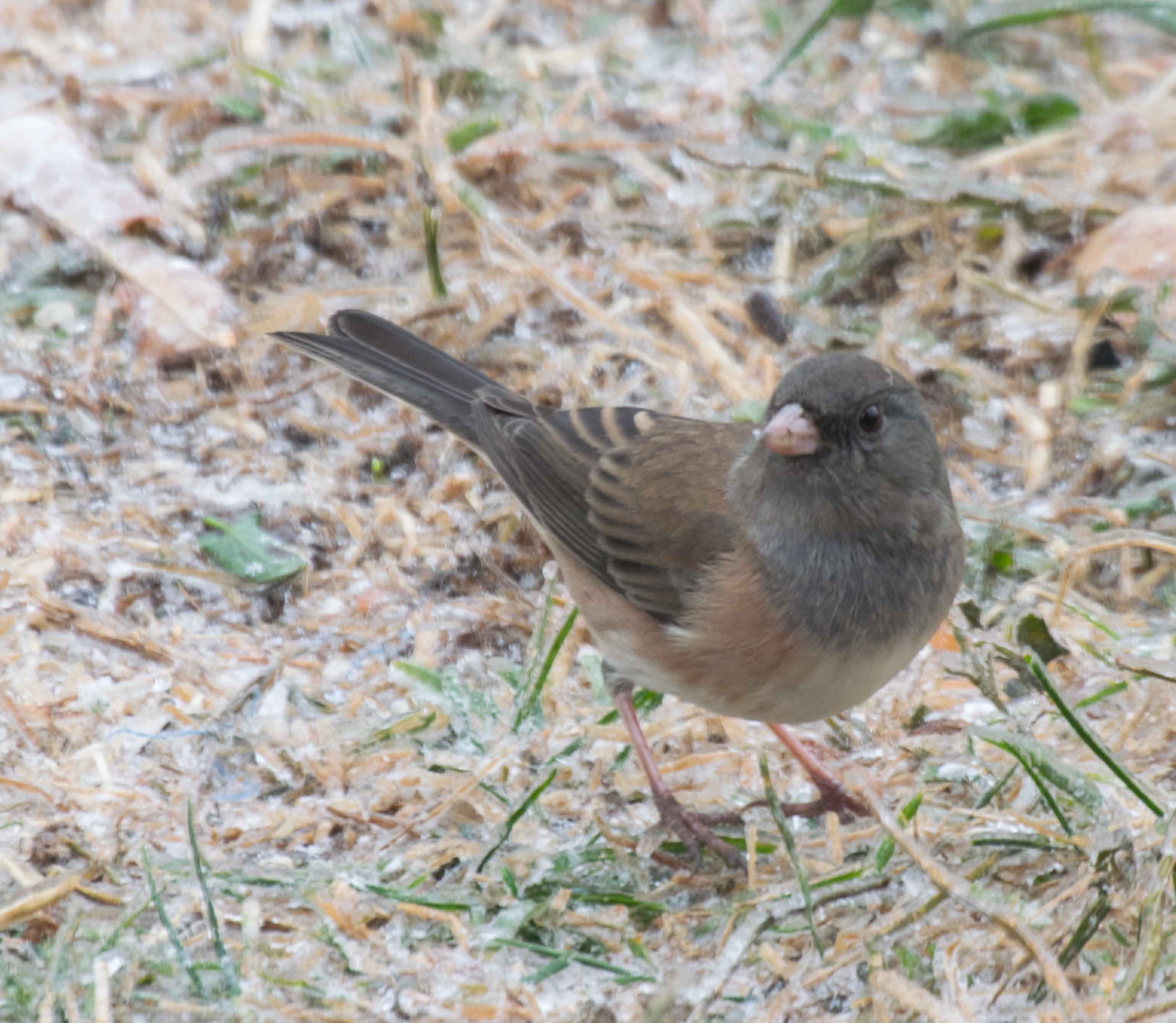 The Oregon junco breeds in the Pacific Northwest, but they winter throughout the west and the Great Plains, which is why I get to see them.