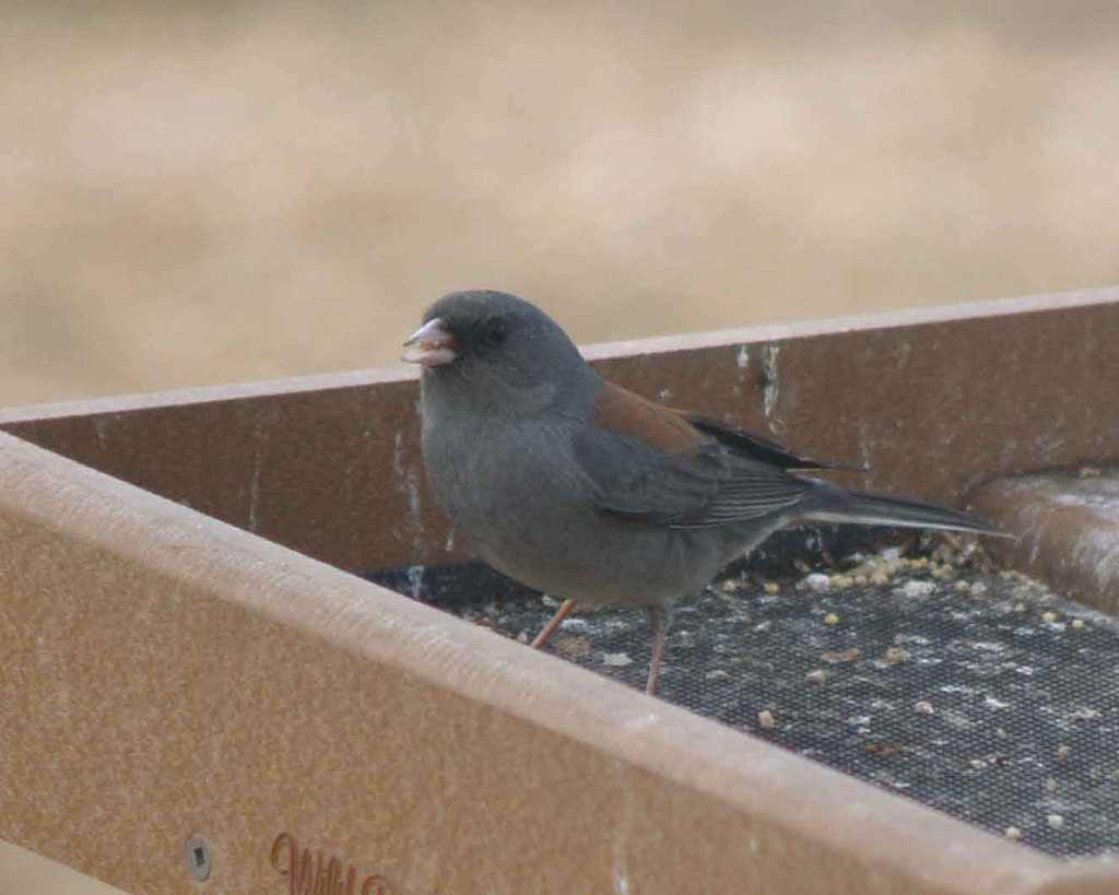 eBird has this to say about juncos: “…incredible variation between populations. All have short pink bills and white outer tail feathers. Often in flocks in winter, foraging on the ground for seeds. Visits feeders. Subspecies include: Slate-colored (widespread), Oregon (West), Pink-sided (Rockies), Gray-headed (Rockies), Red-backed (central Arizona and New Mexico), and White-winged (Colorado in winter).” https://ebird.org/species/daejun
