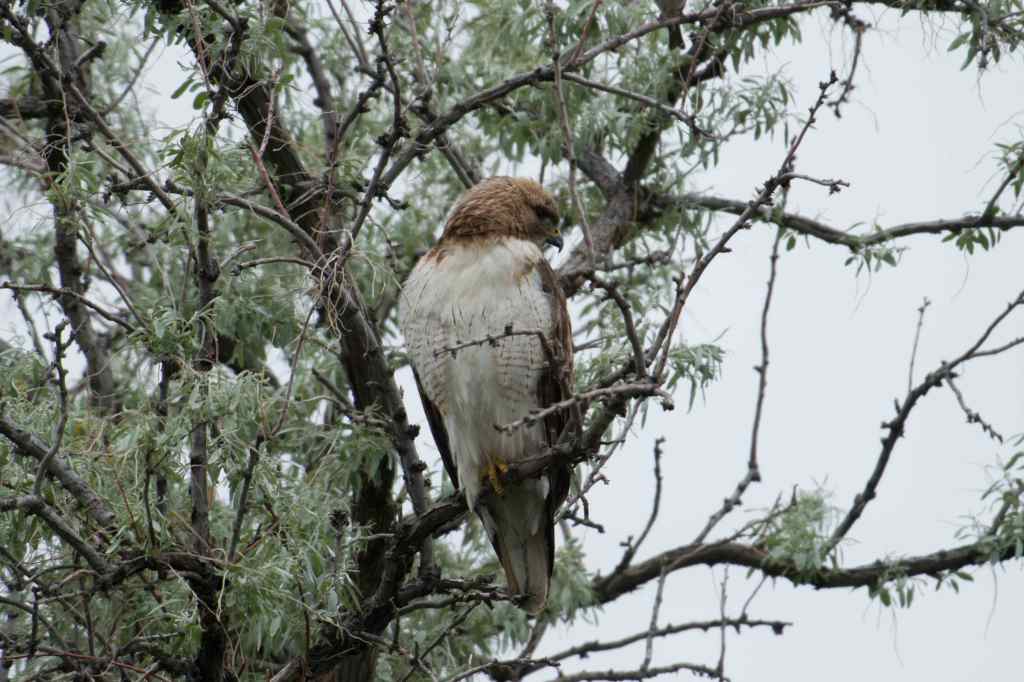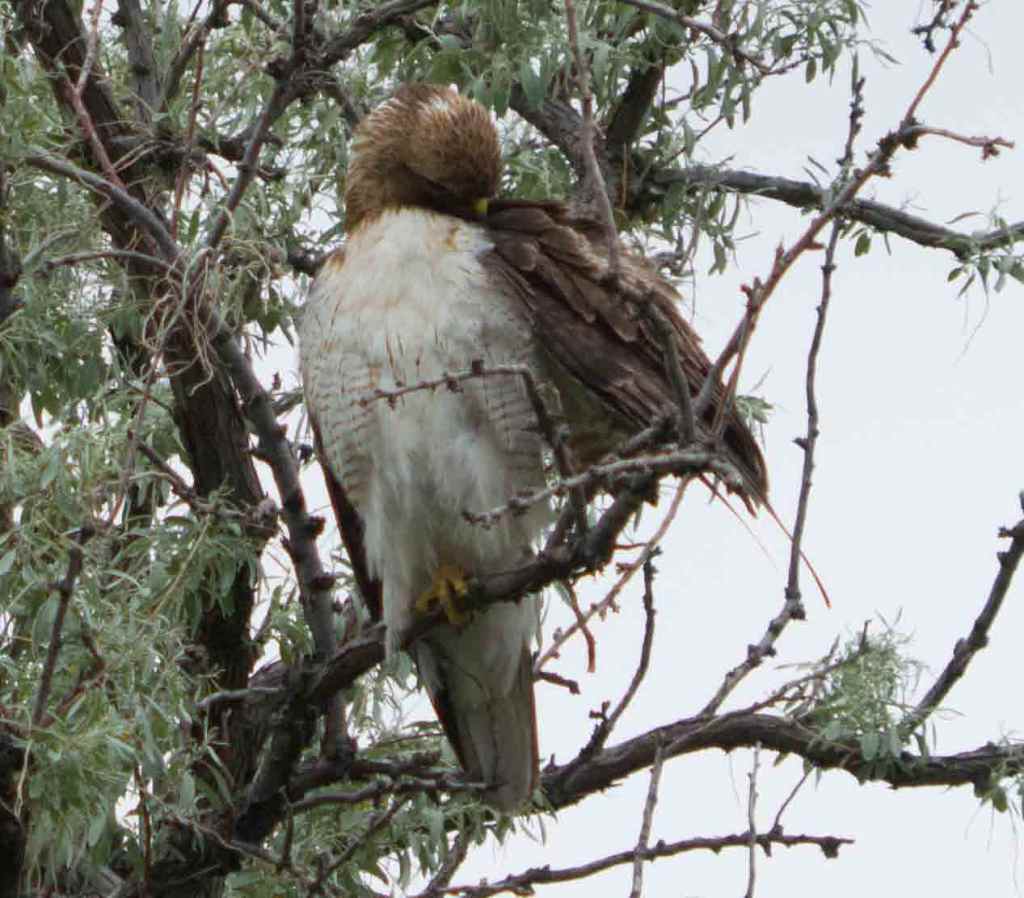 He came back a few minutes later and took the same perch. Oddly, none of the little birds objected this time. Did they know that the hawk was hungry before and was now full? If so, how did they know?