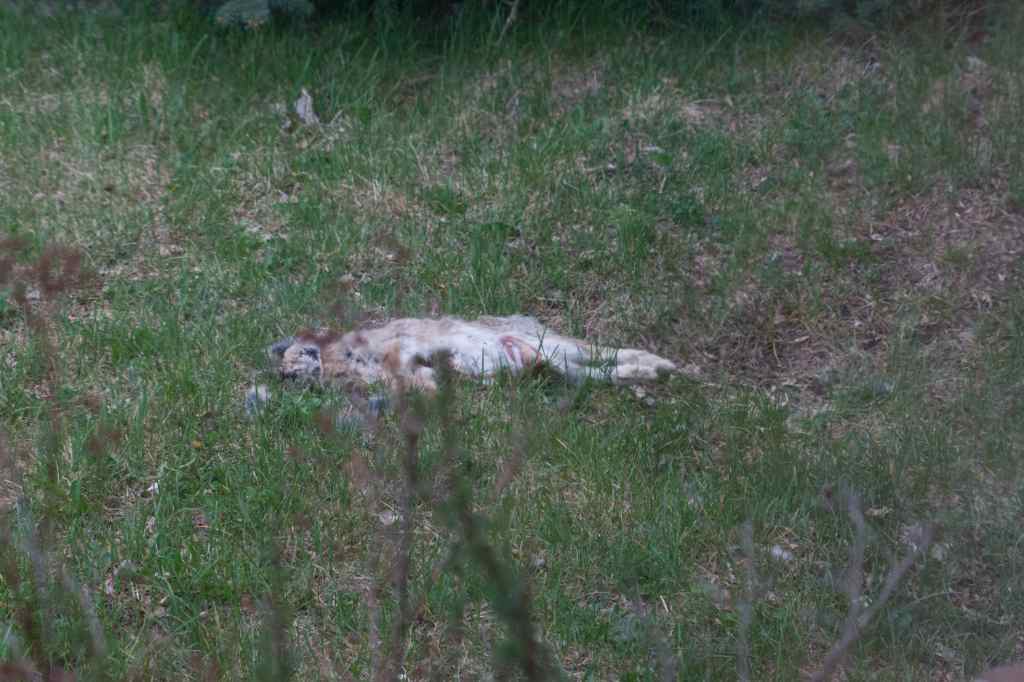 Once he was back, I went around and looked where he had been. There was a dead bunny, probably roadkill from the previous night. In the past 7-10 years, our cottontail rabbit population has exploded. (Baby Bunny Gets Nailed) The coyotes that normally keep them in check don’t seem to be doing their job, possibly because they are dealing with a mange epidemic. The surfeit of rabbits may account for the number of hawks in the neighborhood.