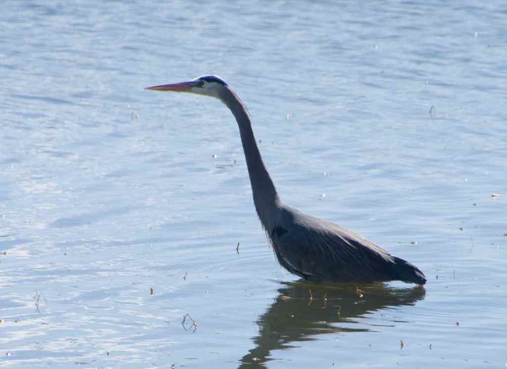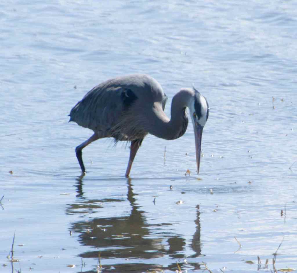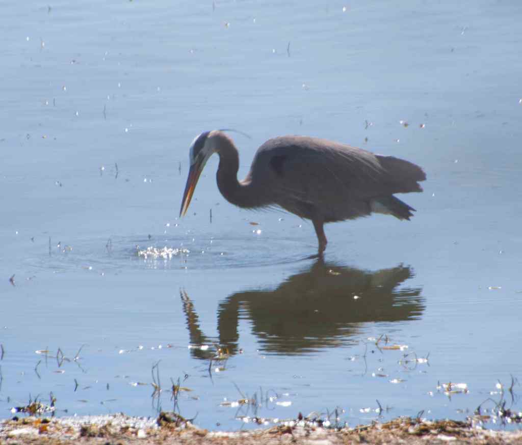 Being mid spring, the powers that be have drained the reservoir before it refills with snow melt from the mountains, so the levels are very low. Less water but the same number of fish means that the Great Blue Herons have easy pickins.