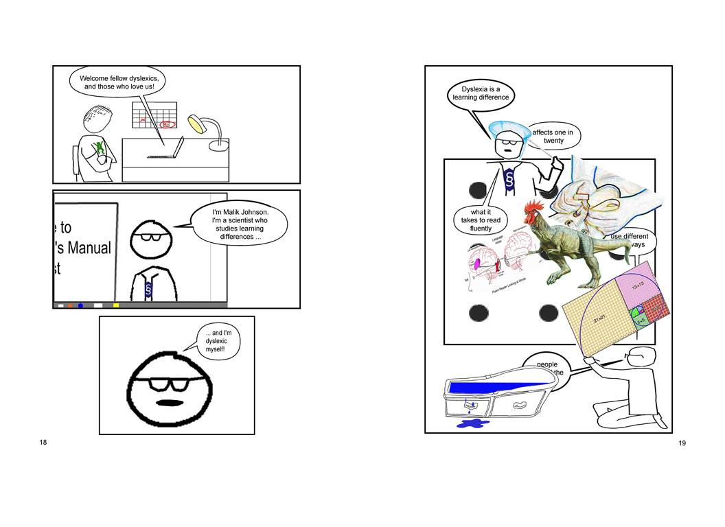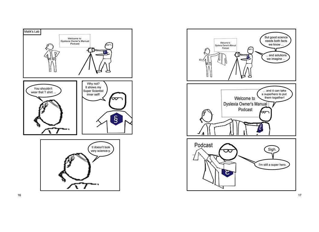 This section gives a quick overview of what we’re going to talk about in the rest of the graphic novel. But it has some problems, first among them that the teacher, Ms. Tate, corrects the hero-scientist, Malik twice in the first three panels. Does this put you off as a reader?