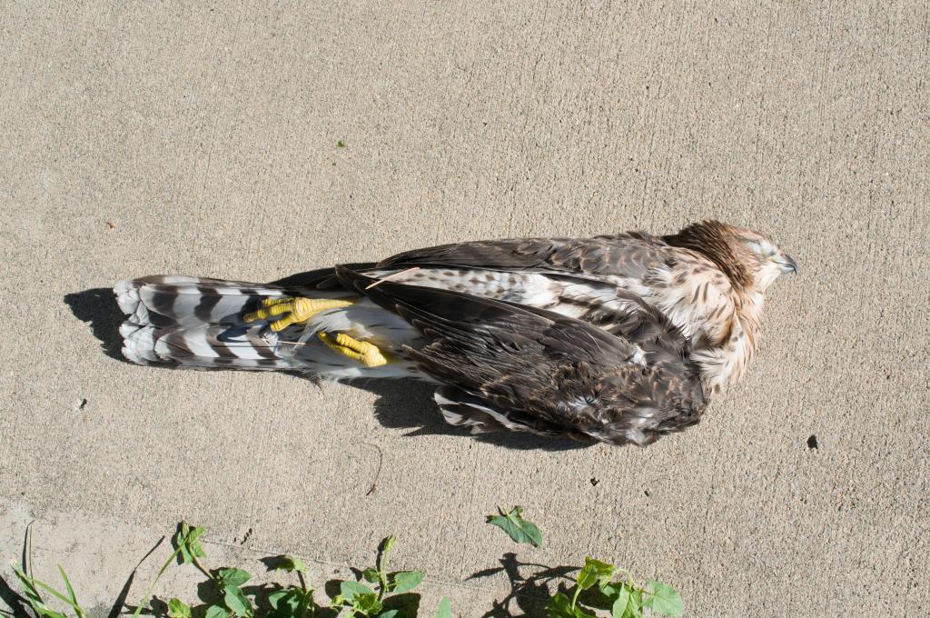 Continuing this post’s theme of death, doom and gloom, two weeks ago on my dog-walk, I found a dead Cooper’s hawk on the sidewalk in front of somebody’s house.