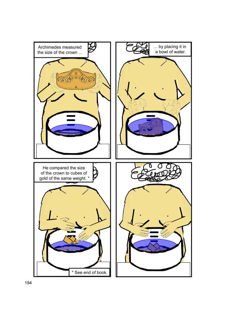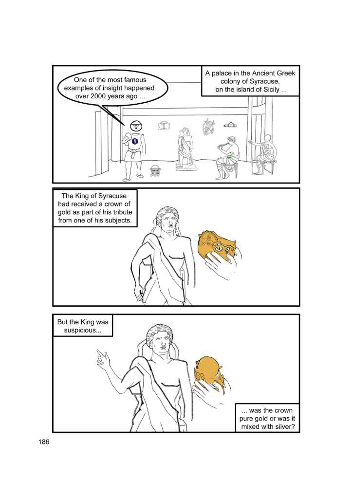 This section repeats one of the most famous examples of insight that we have. It is an excellent example of how astonishingly non-linear insights can be! But is it a too much of stretch of you scientific side to understand why Archimedes was successful? Let me know what is confusing, please.