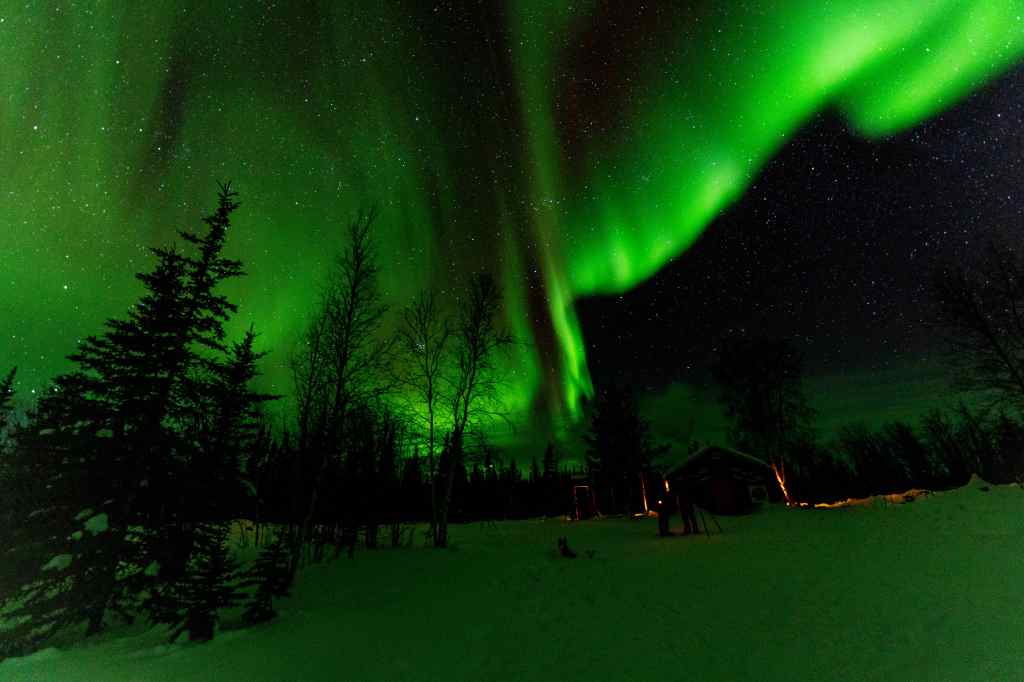 The auroras are best seen at night, in clear skies. The clearest skies are when it is coldest, because most of the moisture has been frozen out of the air. And so, my brother and his wife stood for hours in -35o F weather to see the lights flickering across the sky.