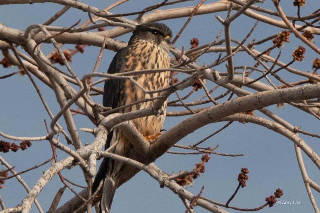 I ran it through the Merlin app, which said it was a Merlin falcon! It’s a rare bird to see in Colorado, especially this time of year. I think the unseasonal warmth let it migrate early.